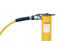 油管與液壓千斤頂相接的部分都有對應的接頭,連著千斤頂的為母接頭,連著油管的是公接頭。拿起油管,將其公接頭對準千斤頂的母接頭,并推送其內部,這一步一定要感覺到兩者推緊貼合,聽到其機械微響。這說明共母接頭完全相連,然后將母接頭上的旋套輕輕選上公接頭上的外螺紋,直至無法炫動為止。到這里油管才算是跟千斤頂連接成功。
