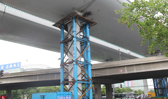 上海中環(huán)滬太路事故路段采用江蘇飛耀PLC液壓同步頂升系統(tǒng)橋梁同步頂升復(fù)位